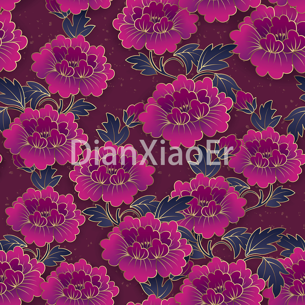 向量(矢量)中國傳統花紋無縫背景 紫色牡丹花 Vector illustration of Chinese traditional pattern seamless background purple peony flower